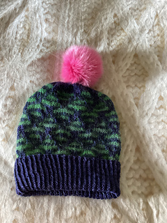 The hat is knit in Dye Dye Done Delia, a luxuriously soft blend of baby alpaca, silk, and cashmere that feels light, warm, and wonderfully comforting. A strand of Sparkly Moha is held alongside, adding a subtle glow that catches the light without ever overpowering the fabric — just enough sparkle to feel special, yet perfectly wearable every day.