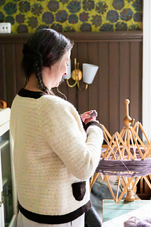 Mallijakku on virkattu Vuonuen Tilta-langalla (100 % suomalainen lampaanvilla, noin 230 m/100 g), sävyt Luonnonvalkoinen (PV) ja Luonnonmusta (KV).
