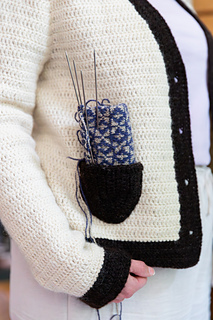 Aaria jakku sopii hyvin haastavampaa virkkaustyötä etsivälle. Takki virkataan ylhäältä alas eikä siihen tule ollenkaan saumoja. Tyylikkään ilmeen viimeistelevät pienet kontrastiväriset taskut,