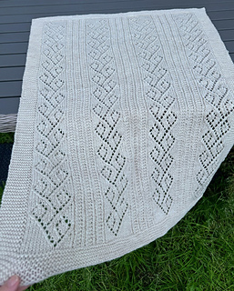 Teststrikket i Mjuk Spire (Coop Extra) på pinner 4,5 og 5 mm. Størrelse: 68 x 90 cm (bredde x høyde, lett strekt og lagt i fasong etter vasking). Garnforbruk: 385 gram.