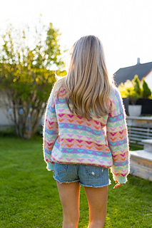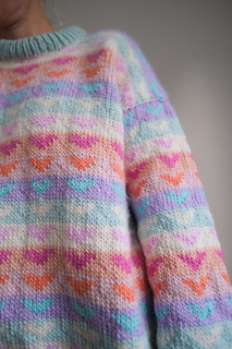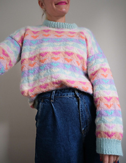 Knitting kit with yarn and free digital knitting pattern. Lovely patterned sweater knitted in soft Hip Wool. The pattern is simple, with a focus on color and color changes, perfect for beginners in multi-colored knitting.