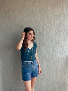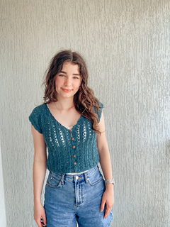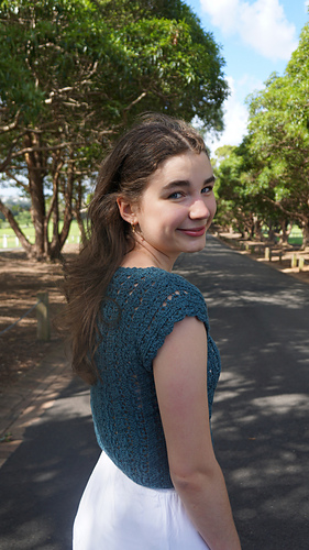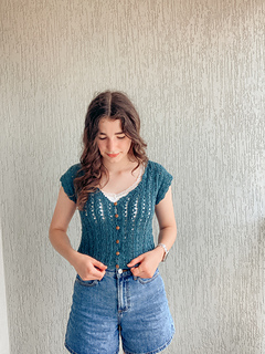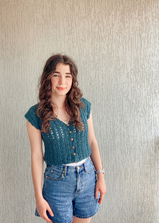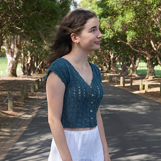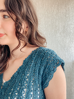 Inspired by the rhythm of the waves hitting the shore and coastal holiday escapes, this lacy top is perfect for beach holidays and relaxing Summer days. The top is crocheted sideways in a special stitch pattern with a V-neck and simple edging.