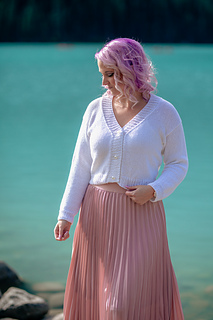 If you’ve been looking for a cardigan that will become your go-to, you’ve just found it. Knit bottom-up, it’s got a beautiful drop shoulder construction that drapes especially well over the shoulder due to being knit with a cotton and rayon blend yarn. Pair it with a flowy skirt for an afternoon tea with friends, or with jeans and sneakers, and you’ve got a total classic on your hands!