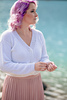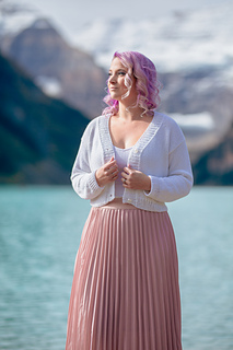 With a slight crop, tapered waist, and buttons, the Afternoon Tea Cardi is intended to be worn with 2 1/2–4 1/2 inches (6–11.5 cm) of positive ease at the bust.