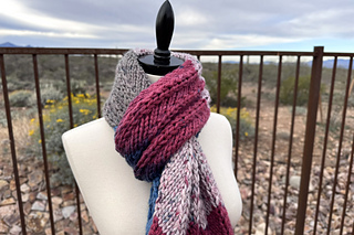 This thick and cozy scarf works up quickly and shows off self-striping and tonal yarns beautifully. The bold texture and oversized stitches make it a standout cold-weather accessory while keeping the knitting process simple and relaxing.