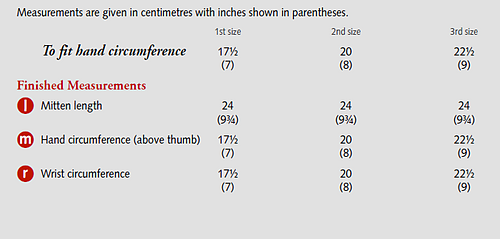 The pattern includes instructions for three sizes to fit hand circumference measurements between 17.5cm (7in) and 22.5cm (9in) and contains both clear written pattern directions, together with charted colour work instructions.
