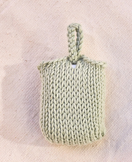 This Cozy is worked in one piece, flat from the top down. Casting on and then immediately binding off stitches creates the Loop closure.