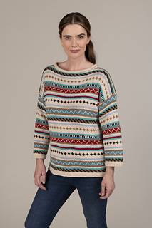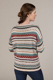 Stranded Stockinette stitch pullover with scoop neck is worked