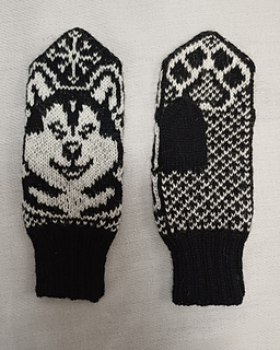 The cuff is worked in an easy rib stitch, the thumb is made using a thumb opening, and the motif is knitted in traditional stranded colorwork. The pattern includes sizes for both adult women’s and men’s hands.