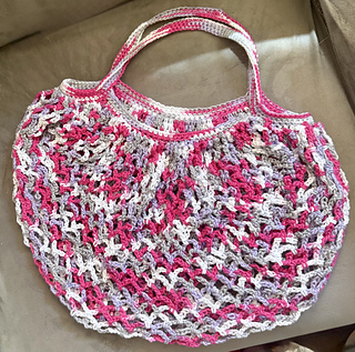 Tote instructions offered in sections, but worked in one piece without fastening off: Tote (Rows), Sides + Handles (Rounds).