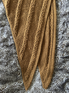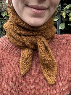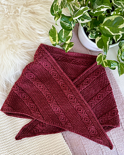 The Alma Scarf are inspired by the Tudor court of Henry VIII and Hilary Mantel’s novels Wolf Hall, Bring Up the Bodies, and The Mirror and the Light. The scarf is knit flat, from point-to-point. The design features a panel of seed stitches framed by panels of 1-by-1 cables, and I-cord edges. The pattern includes charted instructions. The finished scarf should be long enough to wrap around your neck once and tie in the front.