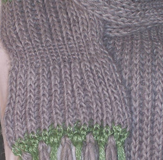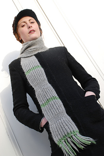 Worked with floating colour changes between Alpaca Quito and Mohair Silk, this scarf has a beautiful drape and subtle