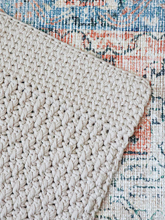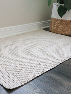 The Alpine Rug is a simple, modern rug graded for 10 standard rug and runner sizes, so you’re bound to find the perfect fit for whatever space a rug is needed in your home — kitchen, bathroom, living room, dining room, entryway, or hallway. The bulky yarn makes this rug a fairly quick make (depending on what size you choose), and the texture/design is perfect for any decor style.