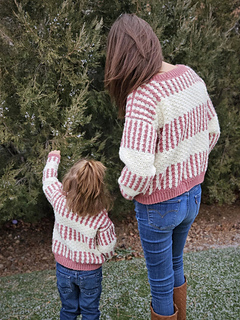 This pattern brings together comfort, durability, and visual interest: perfect for everyday wear, family photos, or matching sibling and parent sweaters. The stitch pattern creates built-in texture and color definition, so even simple yarn choices shine.