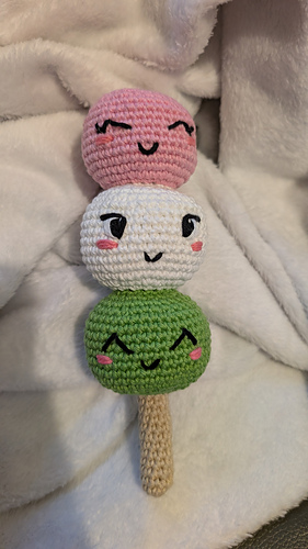 Add a taste of spring to your makes with this Cute Hanami Dango Crochet Pattern PDF! Inspired by the classic Japanese treat, this kawaii amigurumi features three “mochi” balls - sakura pink, vanilla white, and matcha green - stacked on a skewer. Perfect for play kitchens, anime rooms, keychains, ornaments, and market sets. Designed for all skill levels, the pattern includes easy step-by-step instructions and helpful photos so your crocheting feels easy and fun.