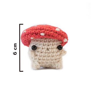 Using medium (worsted) weight yarn and a 3.5 mm (E) crochet hook, your amigurumi mushroom will be about 6 cm (2.4 in) tall. However, exact gauge isn’t important, and you can easily adjust the size by using thicker or thinner yarn.
