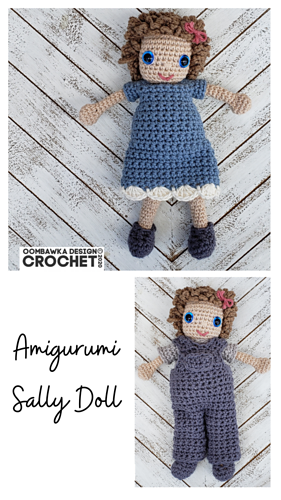 The Amigurumi Sally Crochet Doll is a sweet handmade doll pattern designed to create a 10-inch finished doll with a full outfit.
