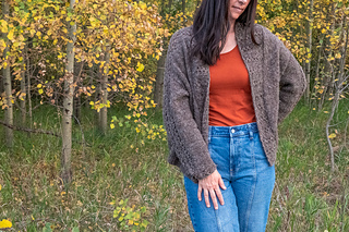 This pattern has 9 size options. Using the recipients chest measurement, choose a size that will give 20 inches (51cm) of positive ease (the difference between body’s smaller measurements and the garment’s larger measurements, including the width of the shawl collar, at these points). The most fool-proof method is to measure a similar fitting garment in your wardrobe and choose size that matches. See schematic in photos.