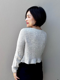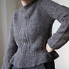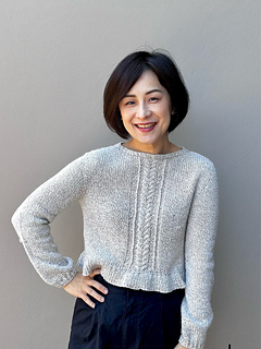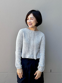 The Anais sweater has a boat neck, fitted silhouette, voluminous hem, and decorative central cable. The neckline is shaped by working short rows. Worked from the top down and seamlessly by using the contiguous method.