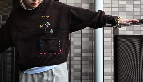 This sweater is worked top-down. Feel free to make your swatch into a pocket if you like!