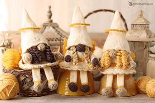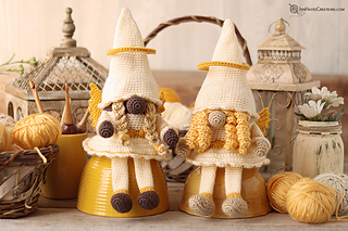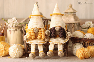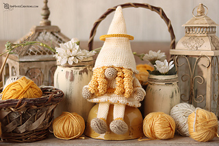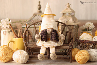 Bring a touch of heavenly charm to your handmade gnome collection with this Crochet Angel Gnome pattern! Dressed in a white gown and a matching hat, each adorned with touches of gold accents, she radiates peace and joy.
