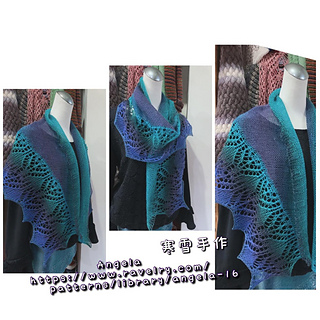 This pretty shawl is designed in honor of my niece, Angela. She is the “model” of the family and has her own sense of style. She’s tall and slim and everything looks good on her! Angela loves big, oversized sweaters. I thought the raw, organic qualities of Noro Akari would be perfect for her free spirit. She marches to her own drummer; and this shawl is perfect for someone like her.