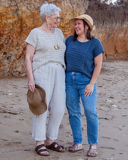 This top is knit with modular construction and seamed using 3-needle bind off and mattress stitch.