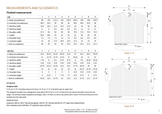 The shoulder drop is designed to be equal across the size range. To achieve this, in sizes 1–4 there is more width in the shoulders and in sizes 5–9 the additional width is around the body.