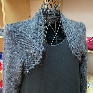 A simple shrug, *MandelBlüte* is easy to knit and fits nicely. The main part is knitted from the middle outward in stockinette stitch, using a provisional cast-on. The sleeves are worked in the round – no sewing or grafting required!