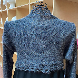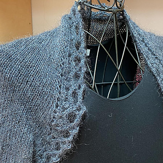 The sleeves and the front opening are finished with a crochet edging.