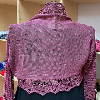 To make the pattern look symmetrical, the shrug is started with a provisional cast-on at the back.