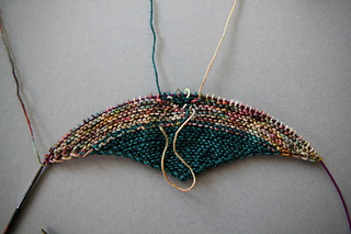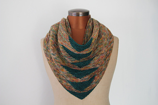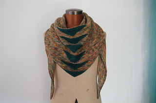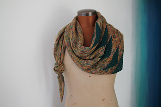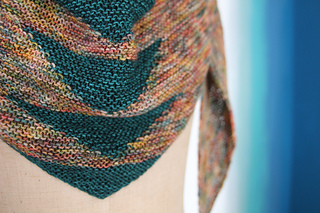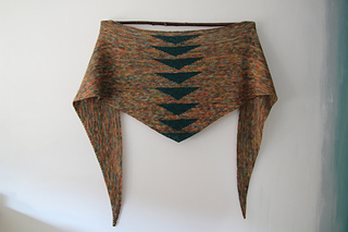 Arria is knitted using garter stitch and intarsia (with only three balls of yarn). It’s a bottom-up shawl and easy to memorise after the first couple of repeats.