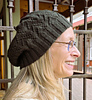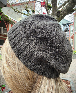 A beautiful yarn and a simple repeating lace pattern combine to make this soft slouch. The pattern repeat is small enough to offer a multiple of sizes so you can pick the head circumference and depth that best suits you. The size shown is a X-large on a medium head.