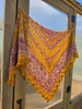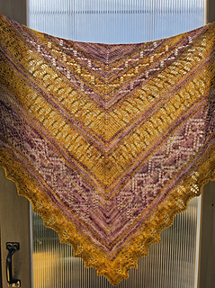 This large triangle shawl is knit from the top center of the shawl down to the lower point. It’s worked with increases along the side edges and down the center.