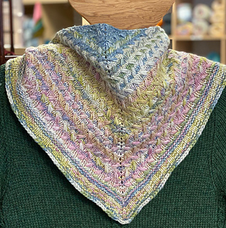 Lots of easy cable texture covers this cowl that is slightly tapered, and bordered with broken ribbing. It’s worked flat from the top down using charts or written instructions, then seamed in the back. Instructions for working the cables with no cable needle are included.