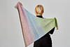 A honeycomb of shifting slipstitch color against a solid background in a classic right triangle shawl.