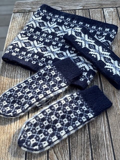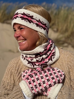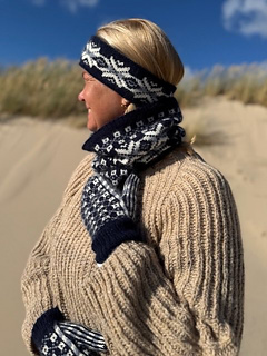 The Astra Cowl and Headband are part of the beautiful Astra-series, which includes a cowl, mittens, and a headband. The series is inspired by traditional Fair Isle and Norwegian knitting patterns but interpreted with a modern touch, making the design both timeless and elegant.
