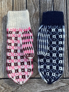 The mittens are worked in the round, starting from the wrist and worked toward the fingers. They are knitted using the magic loop method, but can of course be knitted on double-pointed needles if preferred.