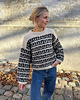 The beige and black Athene Sweater is knitted in Isager Soft by Isager in the colors E6S and 30.