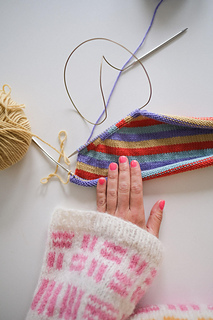 Pop Merino 2 (2) 2 (2) 2 (3) 3 balls of each color, 8 (8) 8 (8) 8 (12) 12 balls total included in the knitting kit