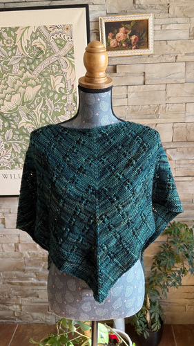 Here is a warm and cozy shawl knitted from top down with lace lines which extend into the edge. Knitted with a single ply hand-dyed worsted yarn by Biscotte Yarns, it will be perfect to warm you up.