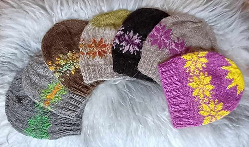 The pattern is simple and gives many possibilities to play with colours and use up leftover yarn. Just add some stars in the top of the head or finish with another colour or the pattern colour and you have a new version.
