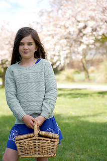 The Atwood Sweater by lisafdesign is a captivating Guernsey-style design featuring textured blocks of geometric patterns that bring depth and interest to every stitch. The pattern is charted.