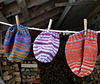My husband’s Aunt Martha was an amazing, talented and productive knitter—she was definitely a role model for me, though I have never come close to matching her output! When our kids were young, she would always come up with just the right knitted items—balaclavas, vests, mittens, socks, stocking caps, scarves and beanies. It was a LOT colder then, (both in the house and out of it!) and I couldn’t begin to keep up with the woollies! Aunt Martha loved stripes, and one Christmas a big box arrived from her filled with an awesome assortment of hats and mittens in many sizes and colors, but all in various stripes, with the occasional “lice” row thrown in for good effect! Some of those hats are now on grandchildren heads, though the mittens have all been felted, worn out and/or lost, which seems to be the way that goes— Here’s to the next generation of free-range kids in their woolly hats and mittens!