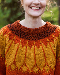 Veera Koivulahden suunnittelema Auringonkukka-kaarrokepaita on ammentanut inspiraationsa loppukesän lämpiminä hehkuvista auringonkukkapelloista. Nyt sinäkin voit kääriytyä auringonkukkien loisteeseen! Paita neulotaan ylhäältä alas ja sitä koristaa auringonkukan terälehtiä muistuttava kirjoneulekuvio.