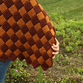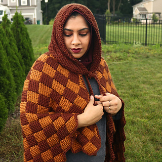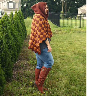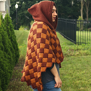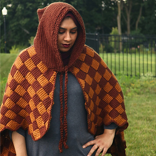 This pattern is for an advanced beginner textured Tunisian crochet entrelac hooded cape! It’s the perfect accessory for your Fall wardrobe. Practice some basic Tunisian crochet stitches while creating a cozy cape! The best part is you don’t need a Tunisian crochet hook for the cape! You will need one to make the hood which is optional!