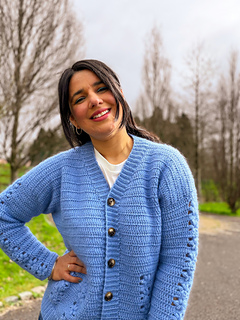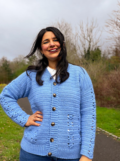 Create something beautiful with the Azalea Cardigan Pattern, a crochet design that looks special without feeling overwhelming to make. This downloadable PDF pattern is written for advanced beginners and confident beginners and includes clear, step-by-step instructions to help you crochet your cardigan with confidence in sizes XS to XXL. The design features a timeless V-neck, a classic button-up front, and gorgeous flower stitch details that add a delicate, feminine touch to the sleeves and body.