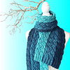 Azul is a richly textured cable scarf composed of three vertical stripes. Worked seamlessly in one piece and knit in three colors from start to finish, it uses an intarsia cast-on and bind-off to create a clean, polished result.