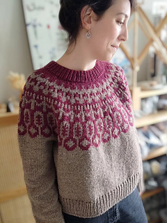 Azuni is a poetic round yoke sweater, perfect for colder days. It has a boxy, slightly cropped shape. A cosy and stylish pullover, knitted in no time ! With its bold bicolor motifs (very easy to memorize), it is a easy and addictive knit. Azuni is also the perfect first colorwork sweater for adventurous begginers.