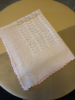 Knitted baby blanket with wave pattern in DROPS Merino Extra Fine or Sky